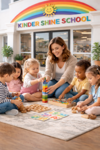 Kinder Shine also takes pride in its Montessori Teachers Training Program, designed to empower aspiring educators with practical knowledge and real-world classroom experience. Mrs. Rana leads a highly skilled and dedicated team of Montessori trainers, each trained to deliver in-depth guidance, personalized mentoring, and hands-on teaching methods. The training program focuses on child psychology, Montessori materials, classroom management, and effective teaching strategies